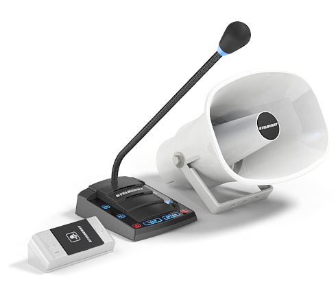 Комплект переговорного устройства клиент-кассир для АЗС с системой громкого оповещения.