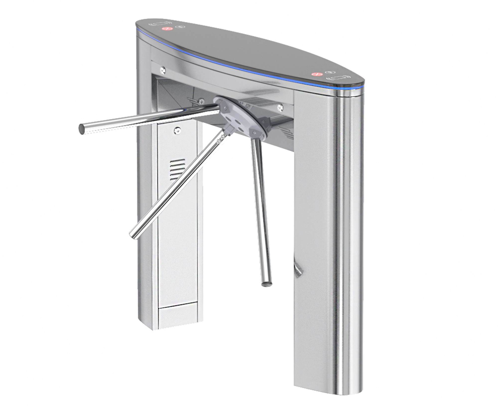 Блокпост ТМБ 1100 - Тумбовый турникет-трипод серии ТМБ, из-за компактных размеров конструкции, высокой пропускной способности является самым удобным вариантом для охраны входа предприятий и организаций. Трипод БЛОКПОСТ ТМБ 1100 может быть оснащен системой распознавания лиц, счетчиком количества проходов, аппаратным ключом, светофором и  пультом управления. В случае аварийной ситуации или сбоя питания срабатывает автоматическое опускание штанги, что гарантирует свободный выход при эвакуации. Турникет оборудован различными режимами пропускной системы контроллера. Есть возможность устанавливать одно- или двунаправленную функцию пропускной системы. Возможно интегрировать стороннее оборудование с использованием реле «сухой контакт».