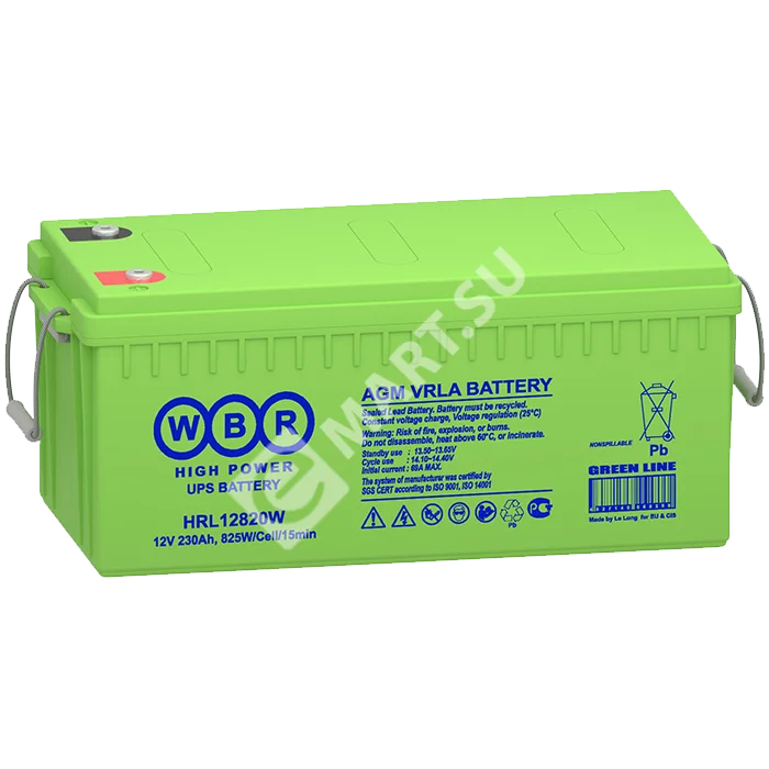WBR серии HRL12820W - герметизированные, необслуживаемые, VRLA аккумуляторы, изготовленные по технологии AGM, со сроком службы до 12 лет применяются для эксплуатации на коротких режимах разряда в системах бесперебойного питания ЦОД и другом технологическом оборудовании. Допускают до 300 циклов глубокого разряда.
