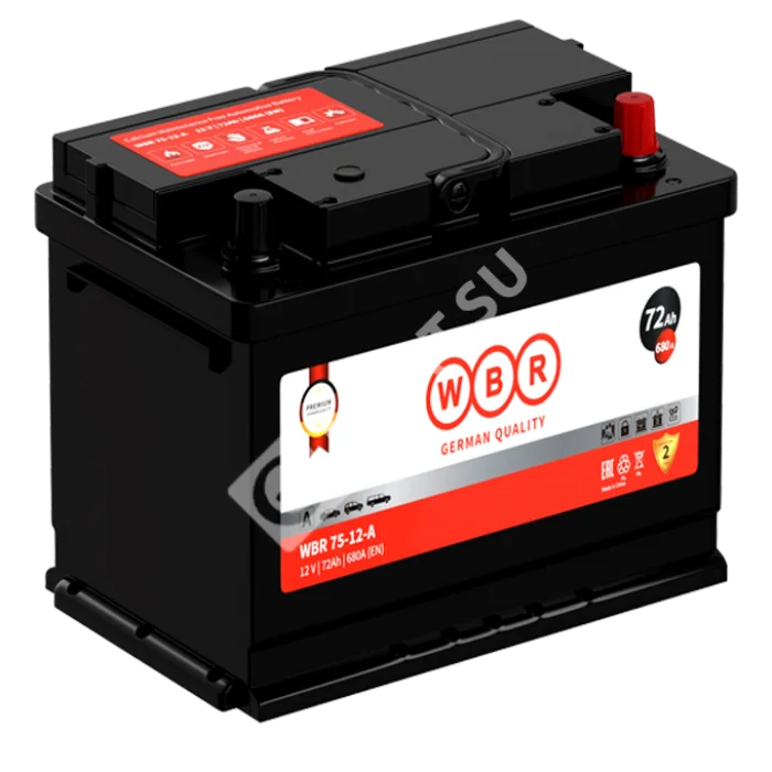 Аккумулятор WBR 75-12-A - стартерная, необслуживаемая, свинцово-кислотная аккумуляторная батарея. Обладают высоким качеством, надежностью, энергоотдачей и большим сроком службы. Эти аккумуляторные батареи успешно выдерживают конкуренцию со стартерными батареями других производителей и предназначены для использования в автомобилях, тракторной технике, запуска дизельных и бензиновых двигателей различной техники. Не требуют долива воды на протяжении всего срока службы.
