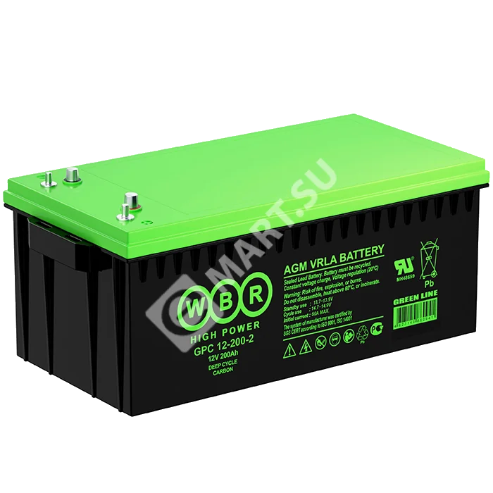 Аккумулятор WBR серии GPC12-200-2 - герметизированные карбоновые свинцово-кислотные аккумуляторные батареи со сроком службы 15 лет или более 1900 расчетных циклов заряда-разряда в циклическом режиме при 70% разряде. Эти высокоэффективные перезаряжаемые батареи не требуют обслуживания в течение всего срока службы и за счет использования чистого свинца, а также добавки углерода в состав электродов получили улучшенные зарядные и разрядные характеристики.