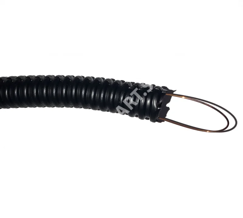 Труба гофрированная пнд с зондом (гофра ПНД): назначение трубы предназначены для прокладки в них электрических, телефонных, компьютерных, телевизионных сетей, работающих при электрическом напряжении постоянного или переменного тока, величиной не более 1000 вольт, выполненных изолированными проводами, шнурами или кабелями. Условия монтажа: - для скрытой прокладки в штробах стен, в потолках, в стяжке полов из негорючих материалов; монолитном бетоностроении - не должна подвергаться воздействию УФ лучей - не образует трещин во время прокладки (скручивания и растягивания) - зонд (металлическая проволока) предназначен для удобства монтажа. Характеристики трубы гофрированной пнд с зондом (гофры ПНД для кабеля) - Обладает устойчивостью к воздействию влаги, маслам, жирам, химикатам - Обладает устойчивостью к старению. - Обладает повышенной эластичностью и ударной прочностью - Широкий диапазон монтажных температур: от -